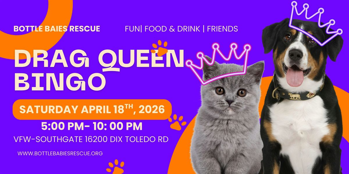 Join the Bottle Babies Rescue team and The Real Drag Queens of Bingo for a night of entertainment and fun! Basket raffle, 50/50 and MORE! (Must be 18+ years of age to attend).