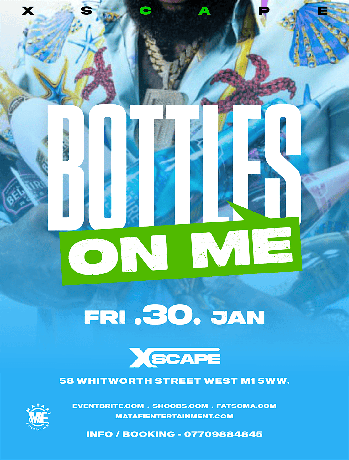 Get ready to pop bottles and turn up the vibes at BOTTLES ON ME — a night dedicated to big energy, good music, and unforgettable moments. Join us on Friday 30th January, from 10PM – 4AM, as Xscape Manchester hosts one of the most exciting nights of the month.