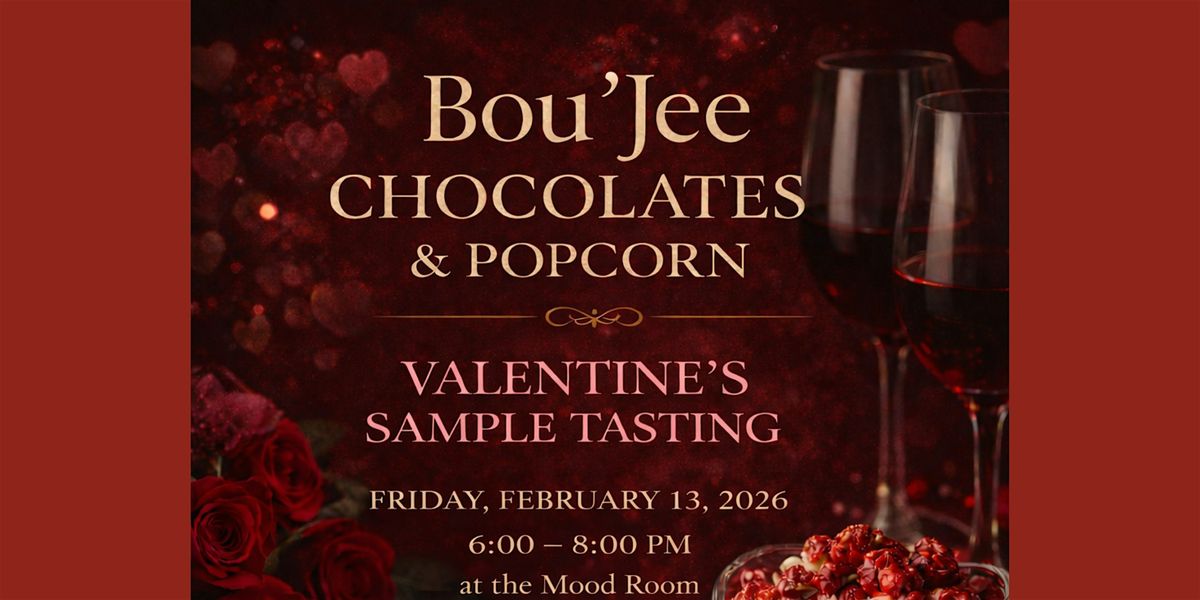Join us for an exclusive tasting experience curated for lovers of fine treats and elevated moments. Hosted at the intimate and luxurious Mood Room, this pre-Valentine’s event invites guests to sip, savor, and explore an artisan collection of Bou’Jee gourmet chocolates and hand-crafted Valentine’s popcorn.