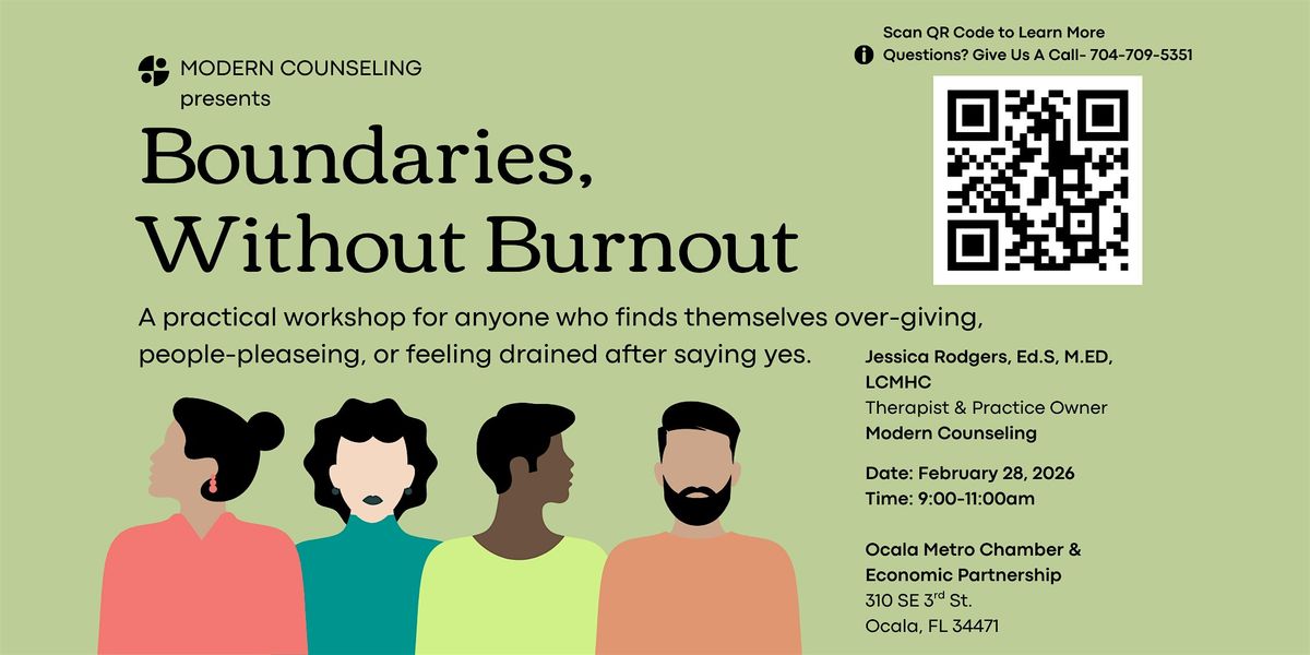 Boundaries, Without Burnout is a small, in-person workshop designed to help you: