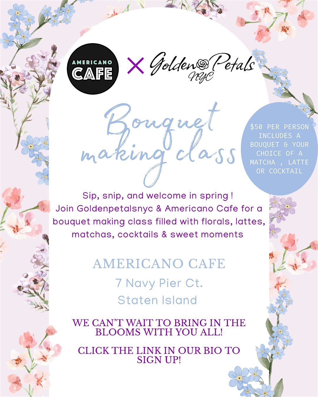 Come and bring in the spring blooms! Everyone will make a bouquet to take home and enjoy. While sipping on a drink of your choice latte, matcha or a cocktail ! Come and meet new people as well as spending time with friend and family.