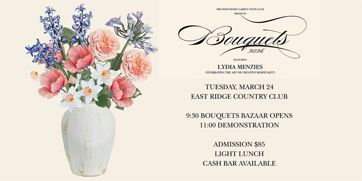 The Shreveport Garden Study Club is delighted to present Bouquets 2026, our biennial celebration of gardening, floral design, and the art of entertaining. Join us in March at East Ridge Country Club for an inspiring afternoon that blends beauty, creativity, and hospitality.