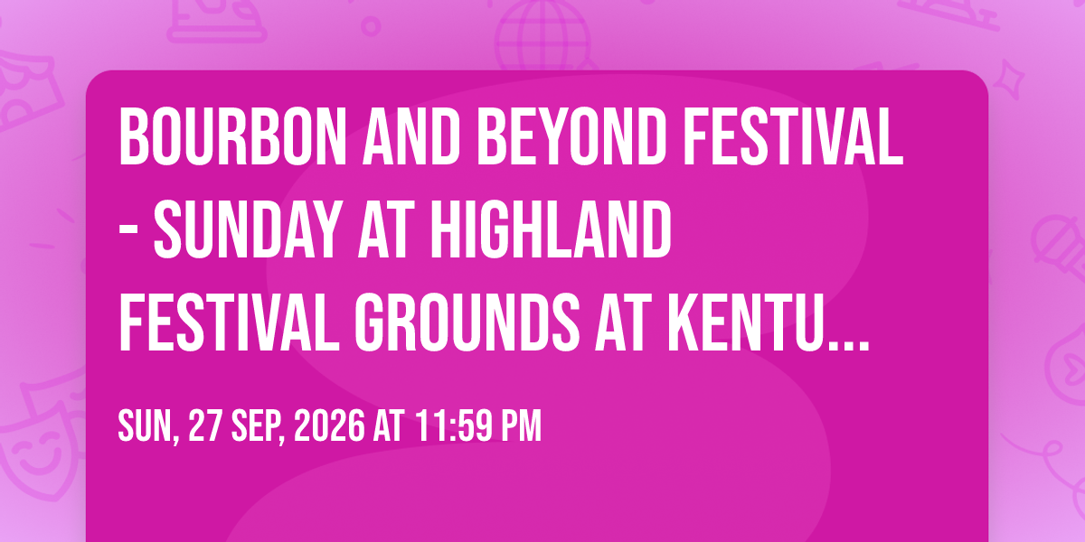 🎉 Prepare to be amazed at Bourbon and Beyond Festival - Sunday at Highland Festival Grounds at Kentucky Exposition Center, the most anticipated gathering of the season! 🌟 Set against the stunning backdrop of Highland Festival Grounds at Kentucky Exposition Center in vibrant Louisville, KY, this event promises to redefine your expectations. 📅 Mark your calendars for September 27th, 2026 at 11:59 PM and get ready to immerse yourself in an atmosphere of wonder and excitement. ✨ From the moment you arrive, you'll be transported into a world where memories are made and stories come alive. They have crafted an experience that perfectly harmonizes entertainment, innovation, and community spirit. 🌈 Join us as we create moments that will be discussed for years!