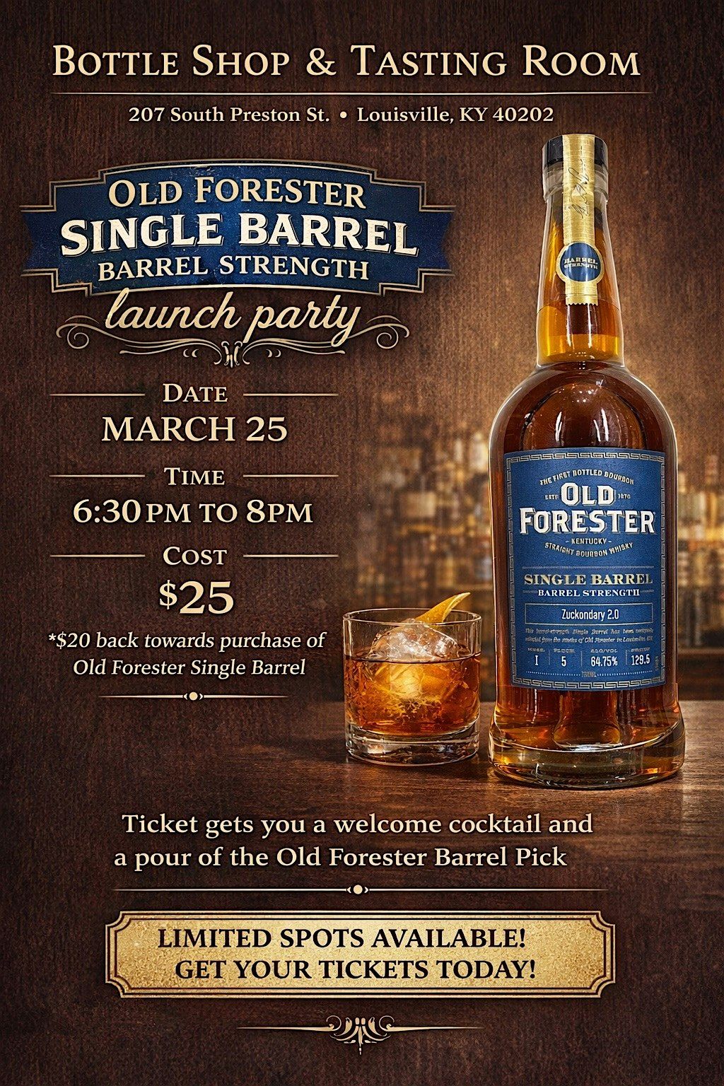 Join us March 25 | 6:30–8:00 PM at Bottle Shop & Tasting Room