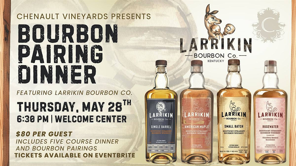 Hailing from Lawrenceburg, Kentucky, Larrikin Bourbon Co. brings a distinctive lineup of premium bourbons, each thoughtfully paired with a five-course chef-curated menu designed to highlight and elevate every pour. From a welcome cocktail and tray-passed bites to a decadent dessert and espresso martini finale, each course offers a unique and immersive tasting experience!