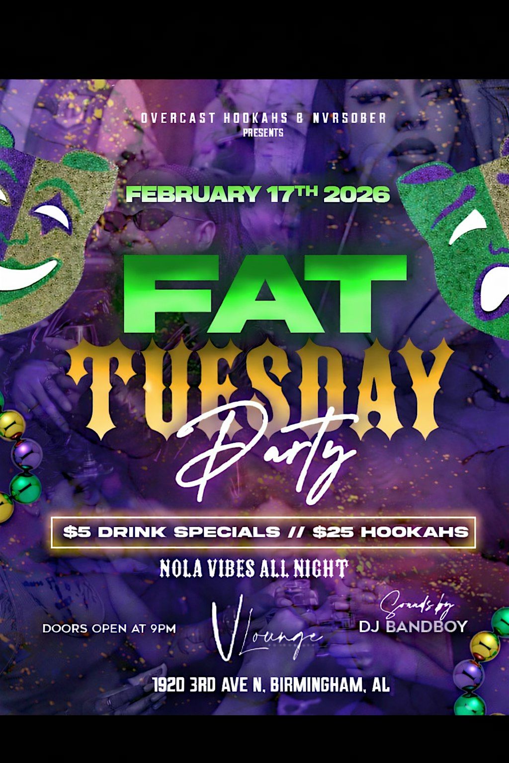 Step into Bourbon Street After Dark, where thick hookah clouds, strong cocktails, and authentic Mardi Gras energy collide. We’re bringing the Bayou to Birmingham with nonstop vibes inspired by Louisiana culture .