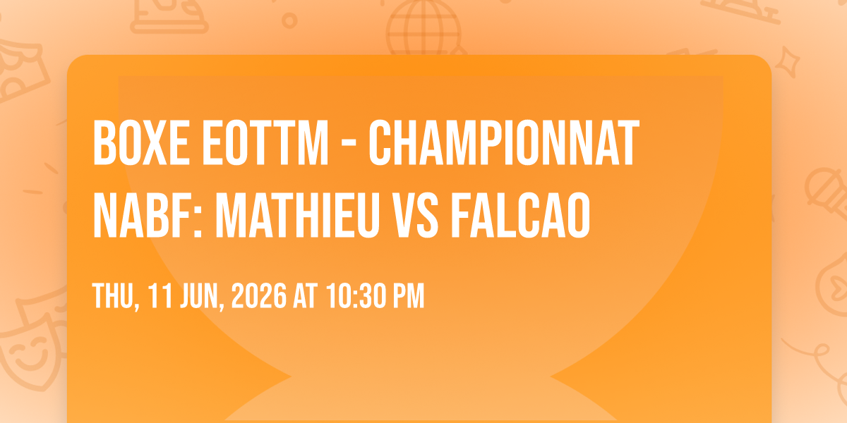 📍 Location: 46.8325, -71.2194🎉 Welcome to Boxe EOTTM - Championnat NABF: Mathieu vs Falcao, where the impossible becomes possible and dreams take flight! 🏛️ Join us at Theatre Capitole in the heart of Quebec, QC for an event that will redefine your expectations. 📅 On June 11th, 2026 at 10:30 PM, witness the transformation of space and time into something truly magical. ✨ It's a curated experience combining the best of innovation, entertainment, and community spirit, creating moments that will be remembered for years to come. Whether you're a first-time visitor or a seasoned enthusiast, prepare to be amazed. 🎊 Book now to ensure your place in this unforgettable experience!