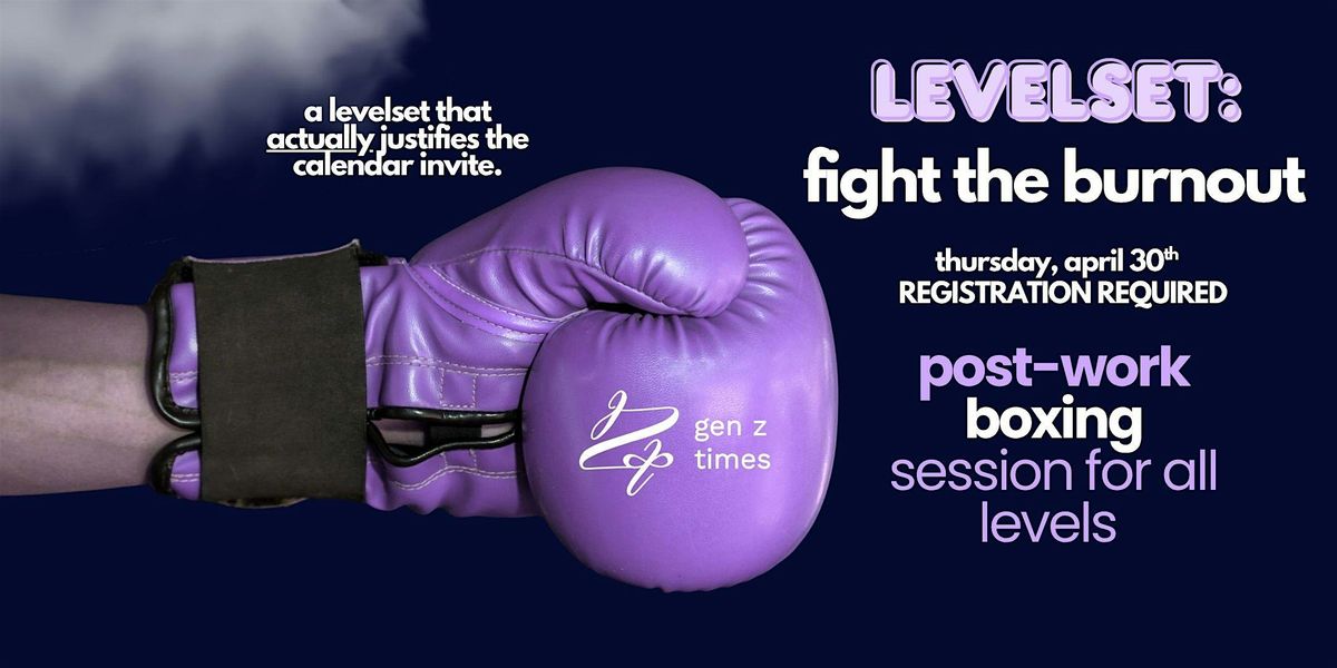 A Seasonal Reset: Sweat. Release. Reground. Forget "touching base"we’re hitting bags. LevelSet: Fight the Burnout is a GenZTimes (GZT) experience designed for the generation that’s always on. This isn't another awkward mixer in a hotel ballroom; it’s a high-energy "O-O-O" for your brain, body, and career. We’re reimagining networking by trading the blazers for hand wraps. Built around our seasonal theme Sweat, Release, Reground this event pairs a high-octane boxing workout with intentional moments of mindfulness. It’s a space to punch out the stress of the quarter, set fresh intentions, and find your people in a community that actually gets the grind.The Agenda: