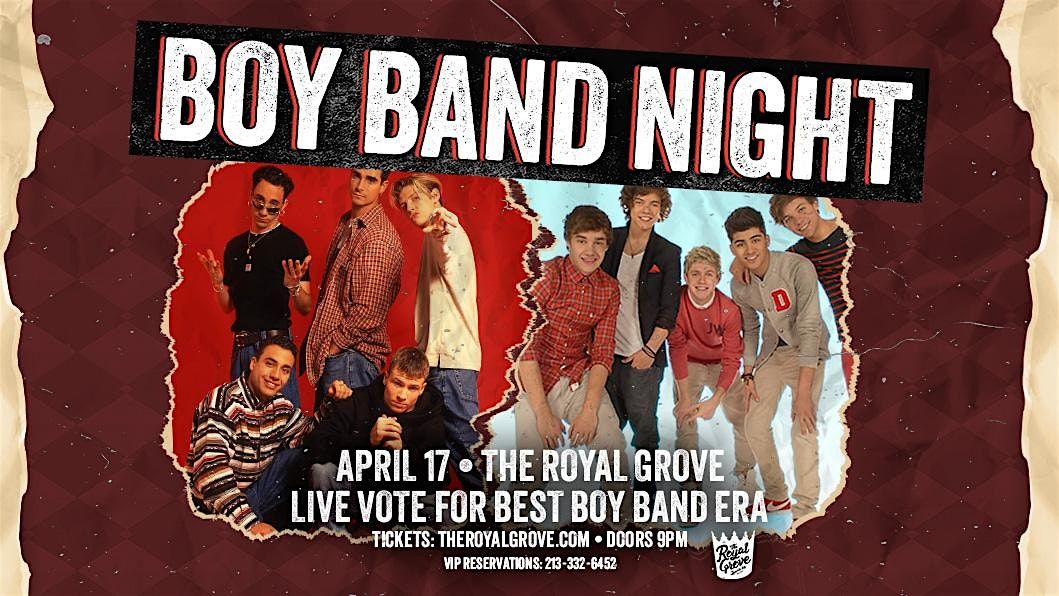 The Royal Grove presents: Boy Band Night - April 17th the same time for a night dedicated to the biggest boy band eras. From the late 90s and early 2000s heartthrobs to the new generation of chart toppers, this is your chance to decide which era really did it better.