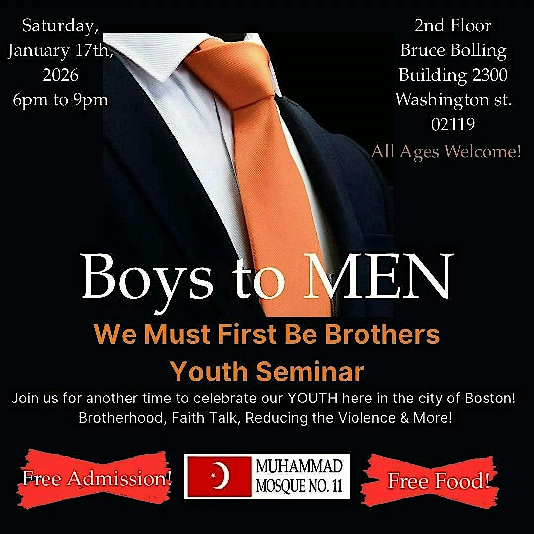 Welcome to the Boys to MEN: We Must First be Brothers Youth Seminar! Join us at the Bruce C. Bolling Municipal Building on January 17, 2026 at 6:00 PM (Eastern Time) for an empowering event.