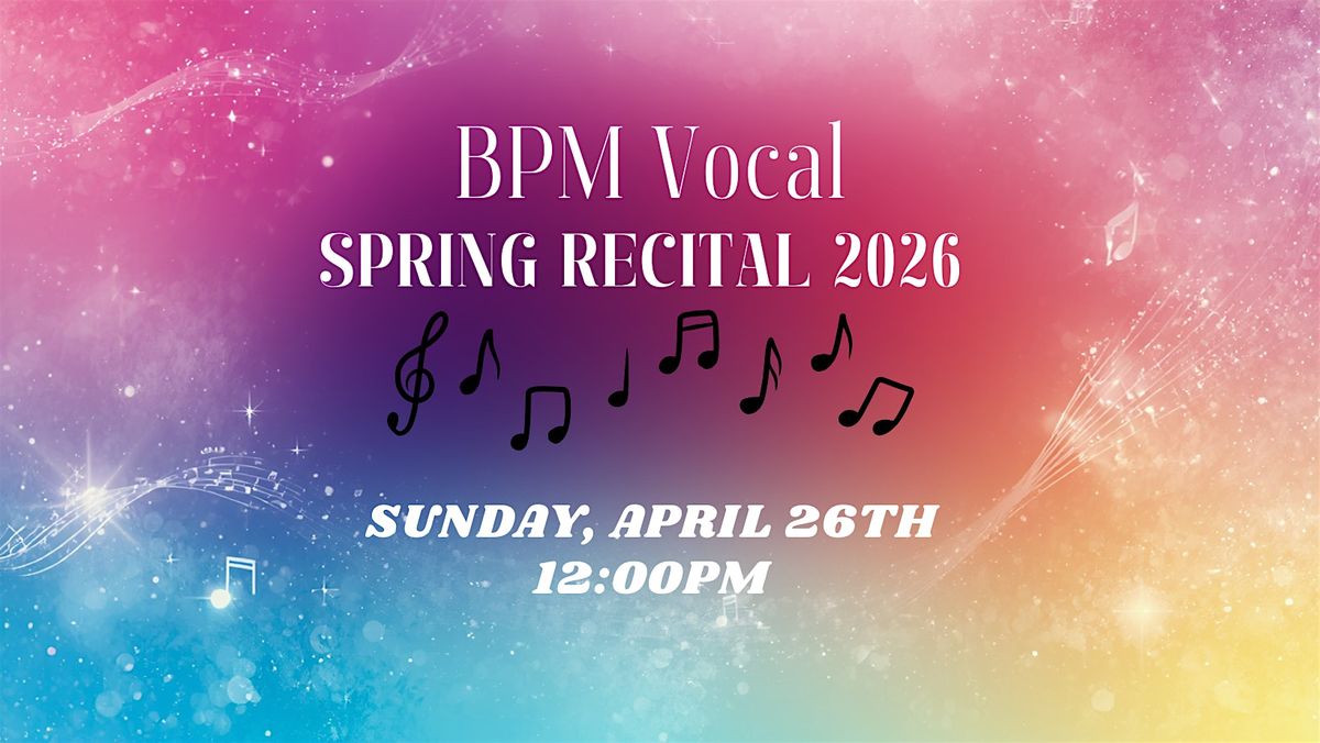 Join us for the BPM Vocal Spring Recital 2026!About this Event