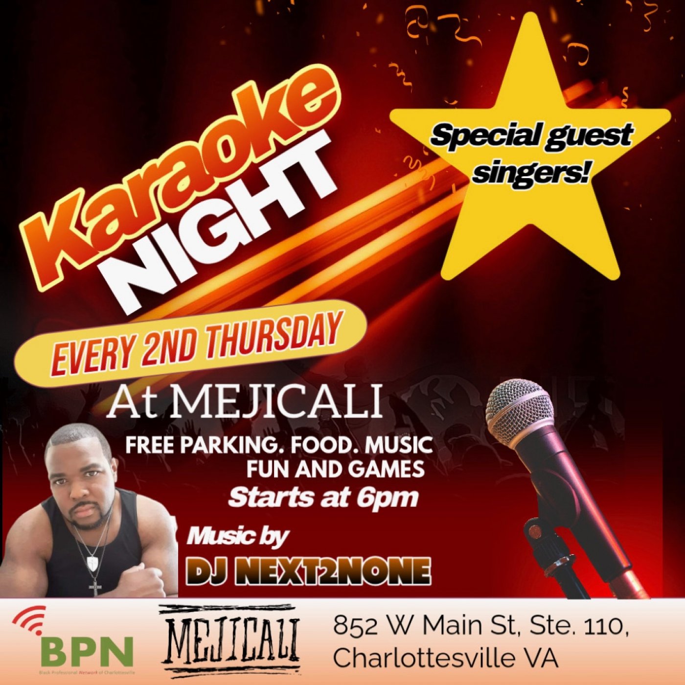 “Karaoke Night” @mejicali_bar_cville! (6pm every 2nd Thursday)