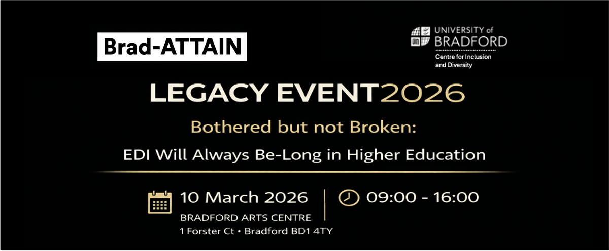 The University of Bradford invites you to the Brad-ATTAIN Legacy Event 2026. A day of celebration, reflection, and learning that marks the legacy and impact of the Brad-ATTAIN programme over the past four years.