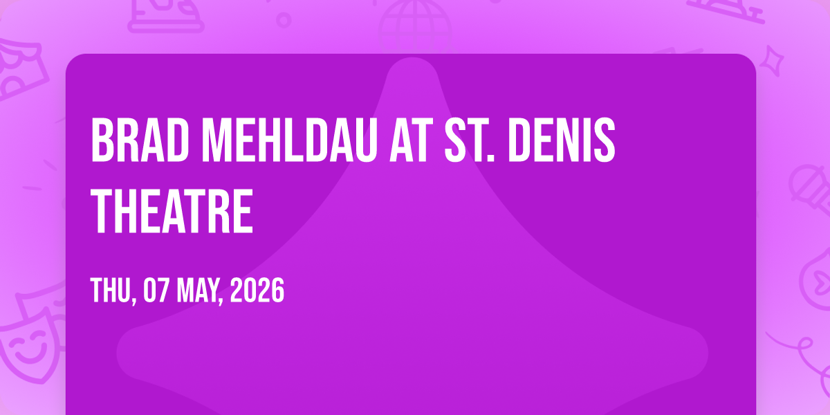 🌟 Be part of history at Brad Mehldau at St. Denis Theatre, an extraordinary gathering that will captivate your imagination! 🏛️ The prestigious St. Denis Theatre in Montreal, QC sets the stage for an unforgettable experience on May 7th, 2026 at 08:00 PM. ✨ They are bringing together the finest elements of entertainment and innovation to create moments that will take your breath away. From the moment you arrive, you'll be immersed in an atmosphere of wonder and excitement. 🎯 This carefully planned event ensures every guest experiences something truly special. 🎊 Early booking is recommended for this must-attend event of the season!