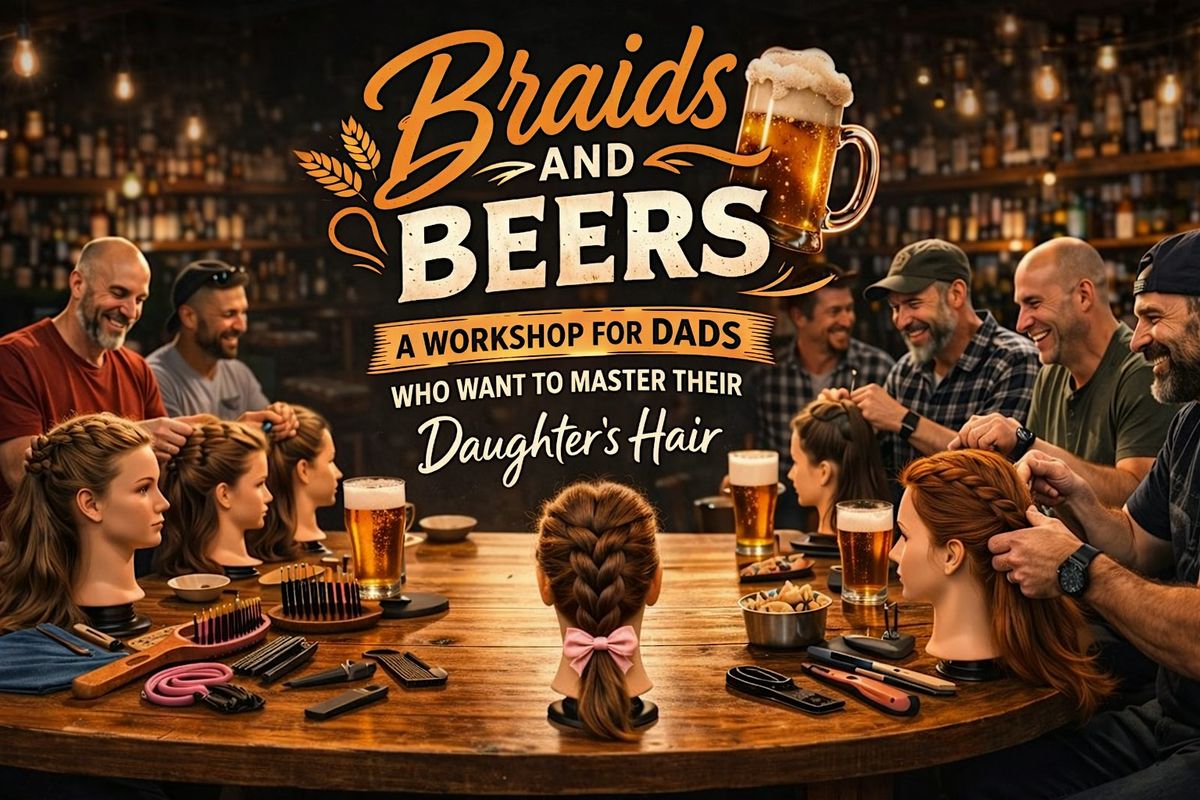 Welcome to “Braids and Beers” a workshop series where dads gather in a local pub, socialize over beers and learn how to style their daughters' hair, led by professional hairstylists!