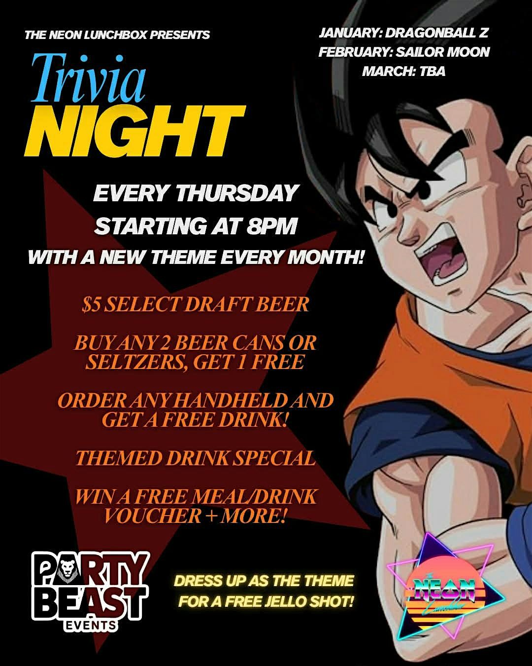 • Dress as the theme → free Jello shotThis trivia night is perfect for: