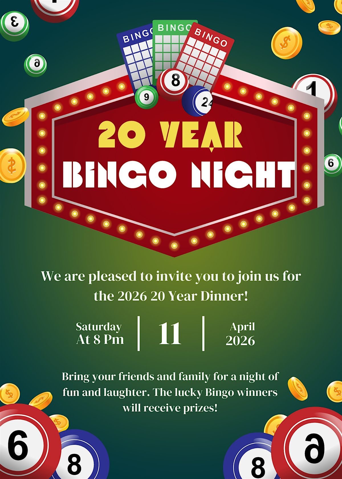 Get ready to celebrate 20 years at Brakebush with a delicious dinner, prizes and bingo!