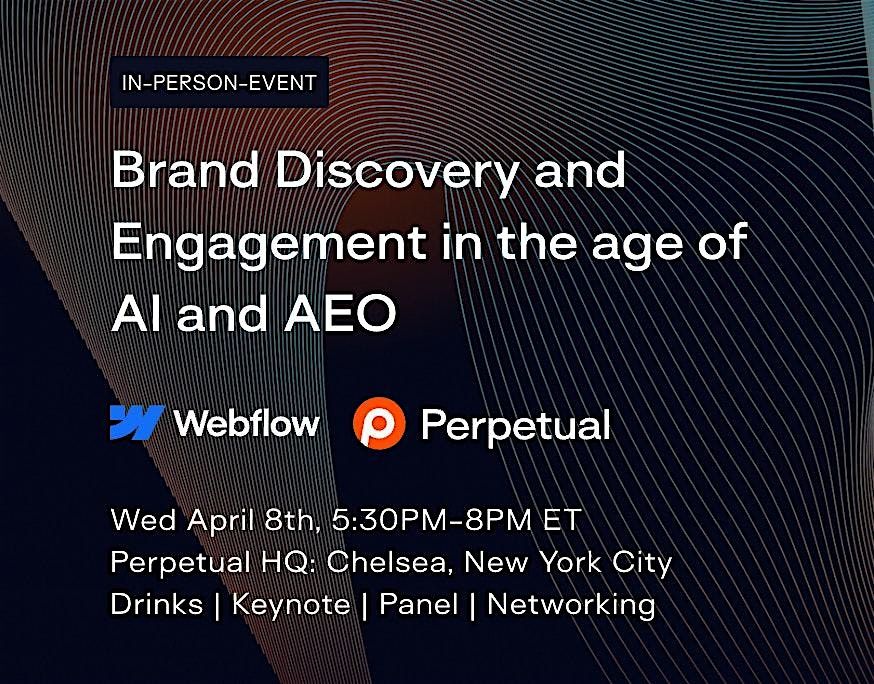 Hosted by Perpetual and Webflow, this event is designed for the leaders responsible for driving growth in New York’s most competitive industries. We will explore how to build a resilient digital strategy that prioritizes brand integrity and consumer trust in a world where the rules of discovery are being rewritten. The event will feature a keynote on AEO from Guy Yalif, followed by a fireside conversation with agency and client leaders applying these strategies in regulated, high-stakes environments.