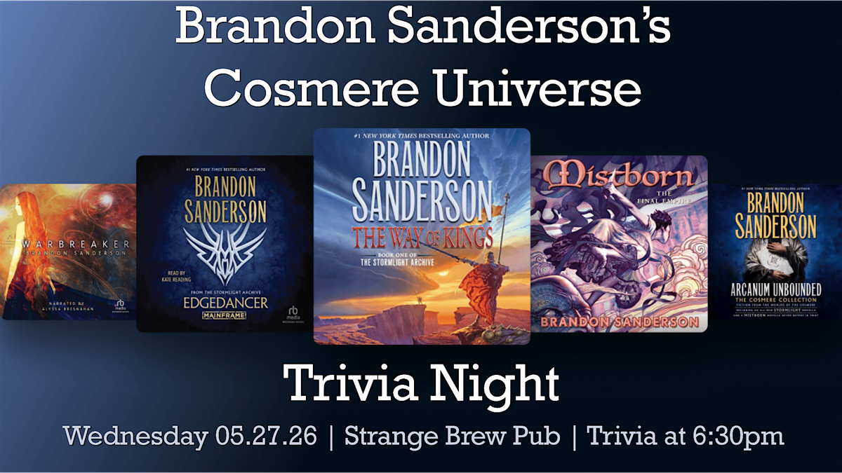 Brandon Sanderson's Cosmere Universe Trivia Night at Strange Brew Pub in Norwich, CT on Wednesday 05.27.26!