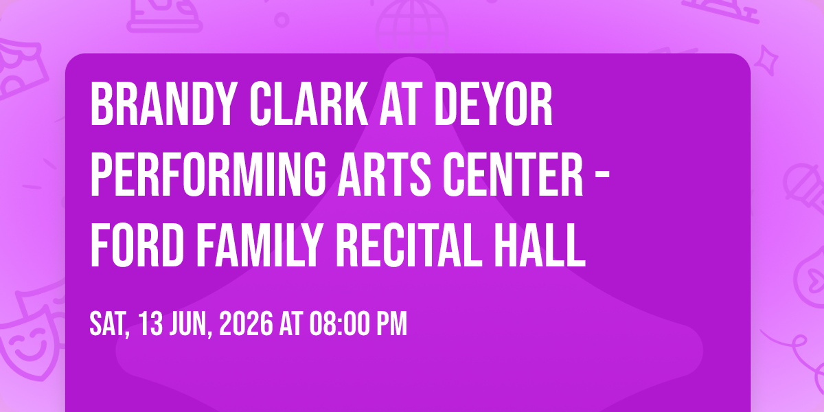 ✨ Discover the extraordinary at Brandy Clark at DeYor Performing Arts Center - Ford Family Recital Hall, where magic meets reality in ways you've never imagined! 🏛️ Set in DeYor Performing Arts Center - Ford Family Recital Hall nestled in bustling Youngstown, OH, this event promises to be a landmark occasion. 📅 Taking place on June 13th, 2026 at 08:00 PM, it's going to create an atmosphere where every moment becomes a cherished memory. 🌟 Immerse yourself in an experience crafted with attention to every detail, designed to surprise and delight at every turn. They have worked tirelessly to ensure this event exceeds all expectations, bringing together elements of entertainment, innovation, and pure joy. 🎊 Don't miss your chance to be part of this remarkable journey!