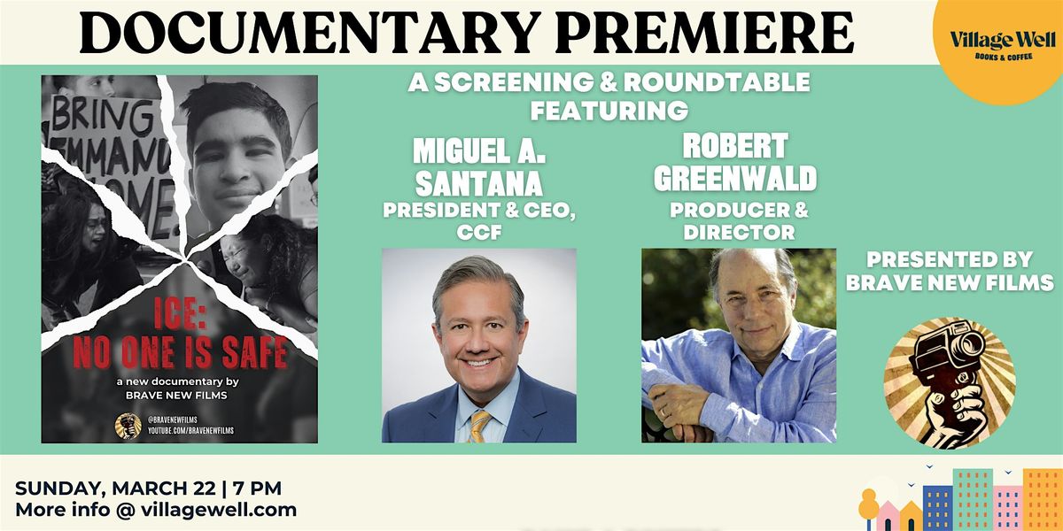 Join us at Village Well Books & Coffee for the premiere screening of Brave New Films’ new documentary ICE: No One Is Safe.