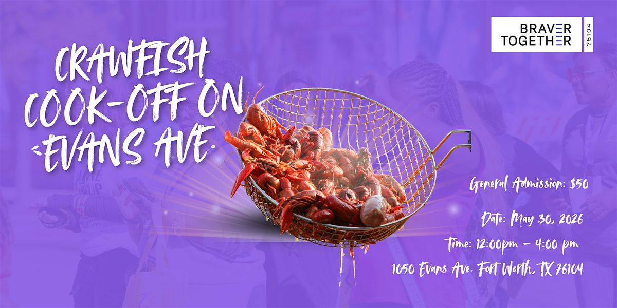 BRAVER Together invites you to the Inaugural Evans Plaza Crawfish Cook-Off & Crawl Fundraiser, where the best local cooks will compete, the community will connect, and a new Southside tradition will be born. Your attendance and support helps advance our mission of transforming 76104 Historic Southside, Hillside and Morningside communities.