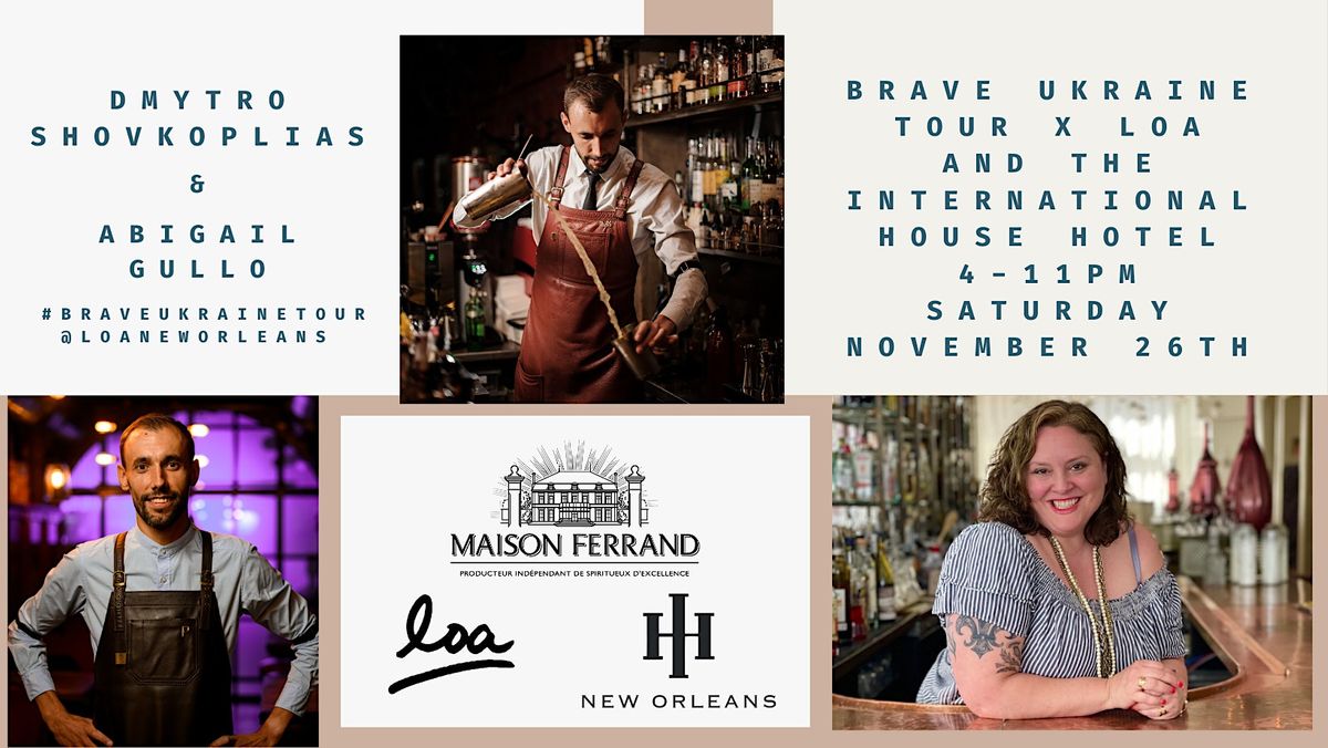 Dmytro is traveling the country to raise awareness and support of the ongoing invasion into his home country of Ukraine. We could not be prouder to do our part and host him in New Orleans. All gratuities of the evening will go to help rebuild the Ukrainian hospitality industry.