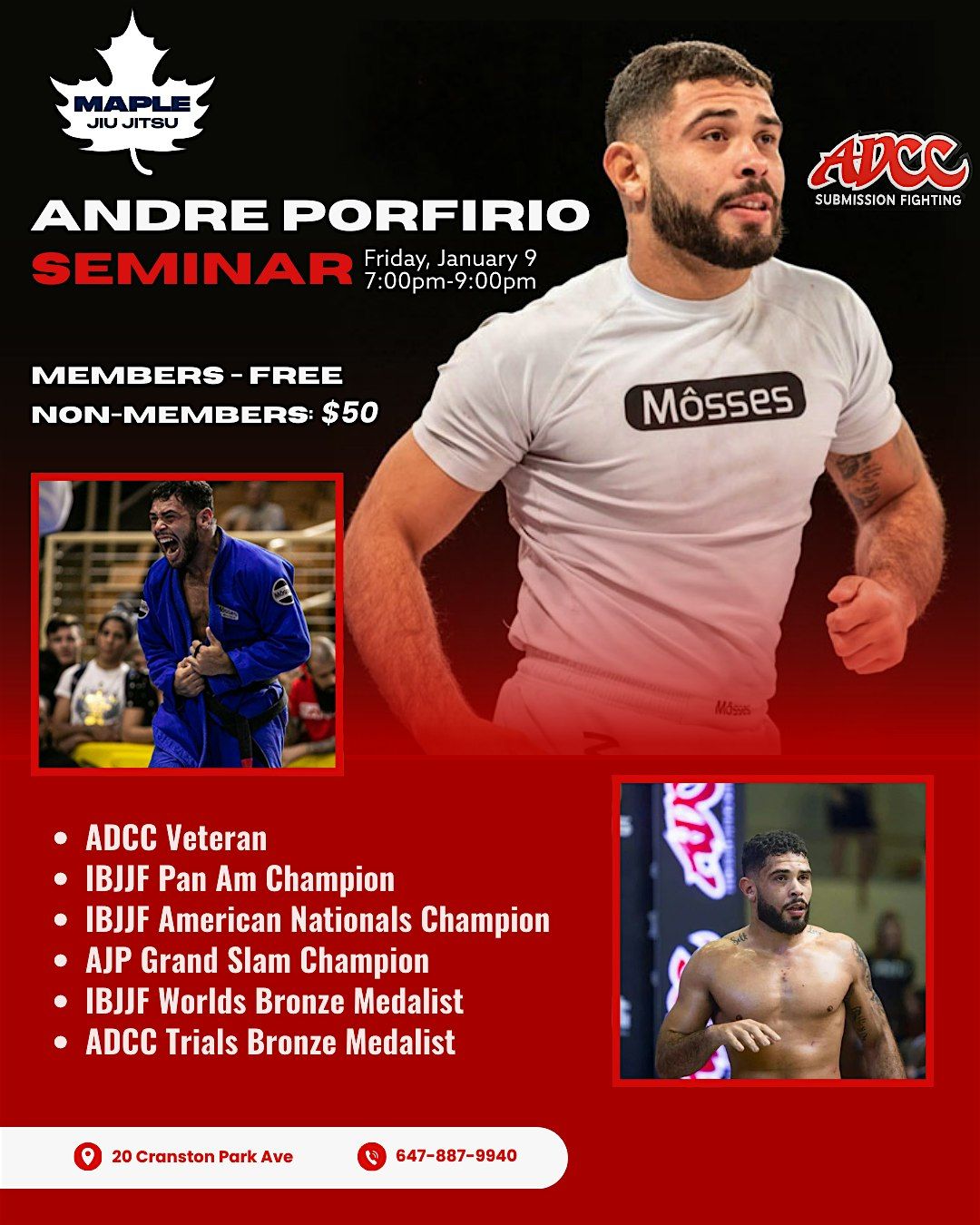 We’re bringing in Andre Porfirio for a high-level seminar you don’t want to miss. Andre is an ADCC Vet!