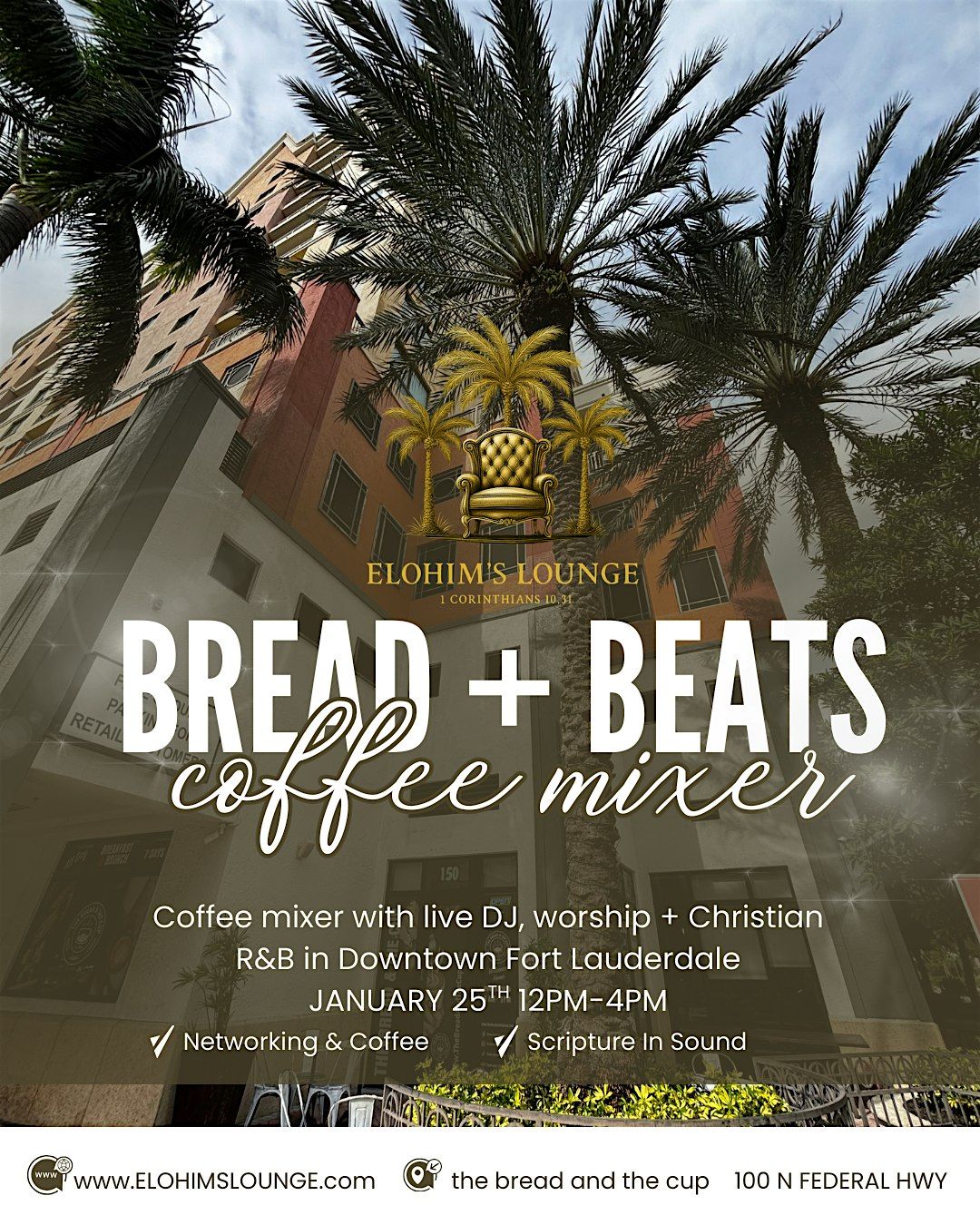 We’re bringing Scripture in Sound to Downtown Fort Lauderdale with a Christian-owned space + Christian DJ delivering a live set of Christian R&B, worship, and feel-good faith-forward vibes.