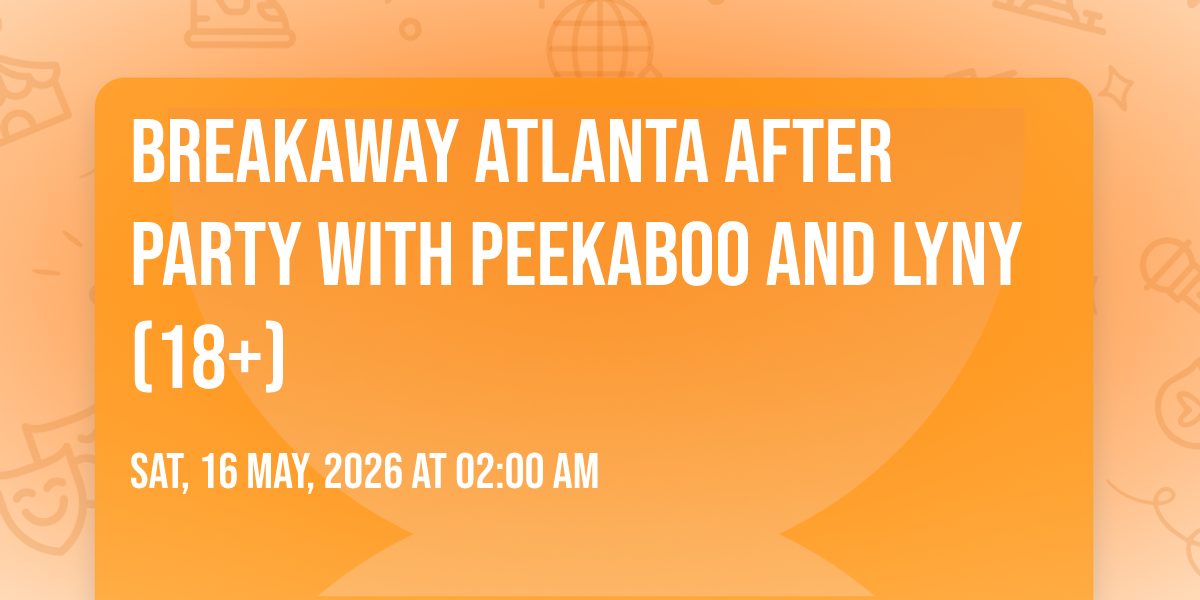 📍 Location: 33.7454, -84.3606✨ Experience the magic of Breakaway Atlanta After Party with Peekaboo and LYNY (18+), where moments become memories that last a lifetime! 🏛️ The iconic The Eastern - Atlanta in Atlanta, GA sets the perfect stage for an unforgettable celebration on May 16th, 2026 at 02:00 AM. 🌟 It's been a curated experience that brings together the best of entertainment and innovation, creating an atmosphere of wonder and excitement. From the moment you arrive, you'll be immersed in a world where the ordinary transforms into the extraordinary. 🎊 Book early to secure your place in what promises to be an event that will be talked about for years to come!