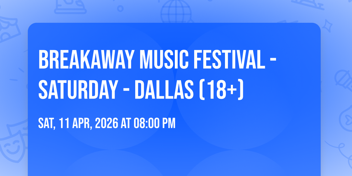 📍 Location: 32.7767, -96.797🌟 Journey into wonder at Breakaway Music Festival - Saturday - Dallas (18+), where extraordinary experiences await around every corner! 🏛️ Set against the backdrop of Fair Park - Dallas in dynamic Dallas, TX, this event promises to exceed all expectations. 📅 Join us on April 11th, 2026 at 08:00 PM for a celebration that combines innovation, entertainment, and community spirit in perfect harmony. ✨ There will be an atmosphere where memories are made and stories come alive, ensuring every guest experiences something truly remarkable. 🎊 This is more than just an event; it's a journey into the extraordinary!