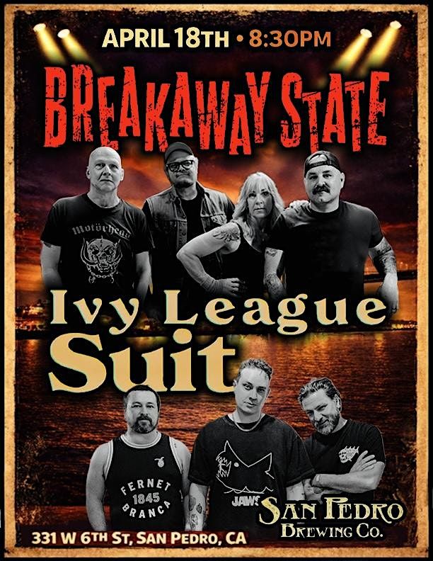 Get ready for an epic night in person as Breakaway State teams up with Ivy League Suit for an unforgettable show at San Pedro Brewing Co.