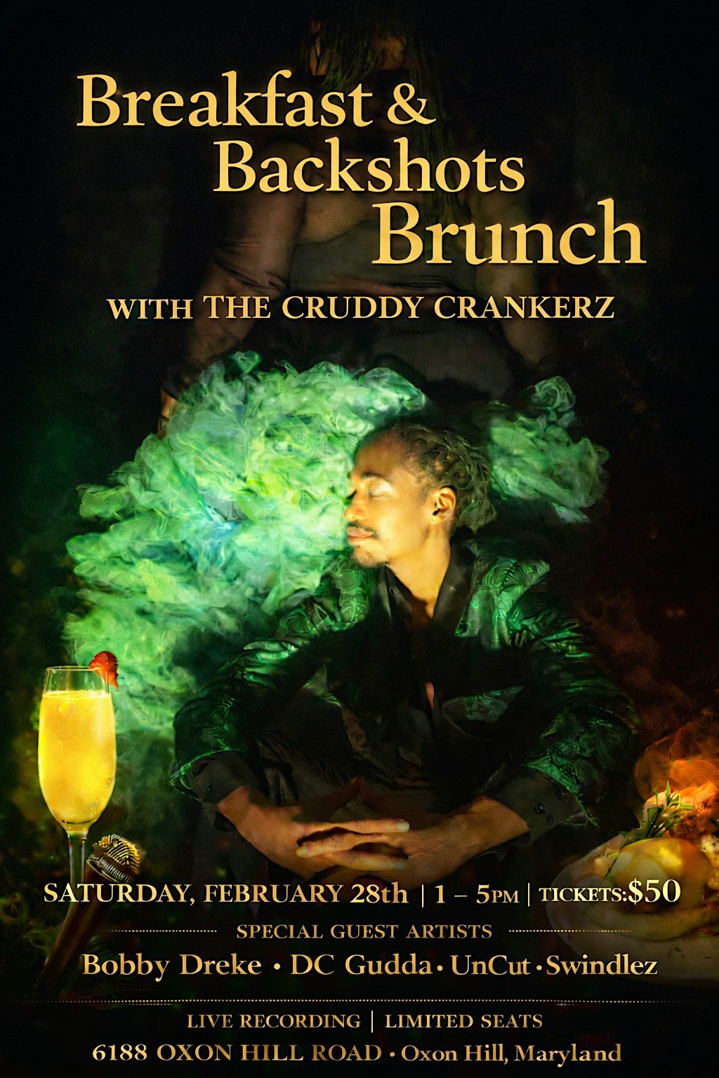 NO BACKSHOTS WILL BE GIVEN AT THIS EVENT! Only a conversation or two about the subject. What you will receive is a good time. Fun food and laughs. The brunch is a fundraising event for the summer concert series The Cruddy Chronicles hosted by The Cruddy Crankerz The husband/ wife Cruddnamic Duo - Lady Moet Beast & D.C. Ty The Monster will be performing live With thier band along with a few guest artists.