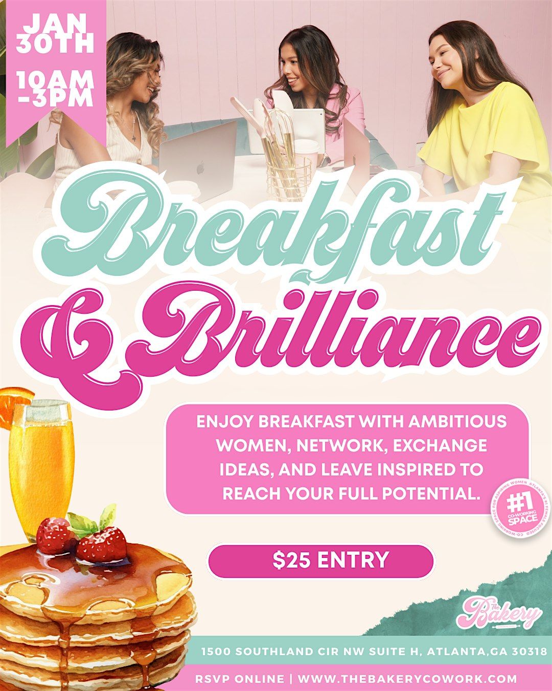 Breakfast & Brilliance is a welcoming morning gathering for ambitious women to connect, network, and spark meaningful conversations over breakfast. This event creates space for relationship-building, idea sharing, and inspiration in a relaxed and uplifting environment. Attendees will leave energized, encouraged, and ready to move forward with clarity and confidence!