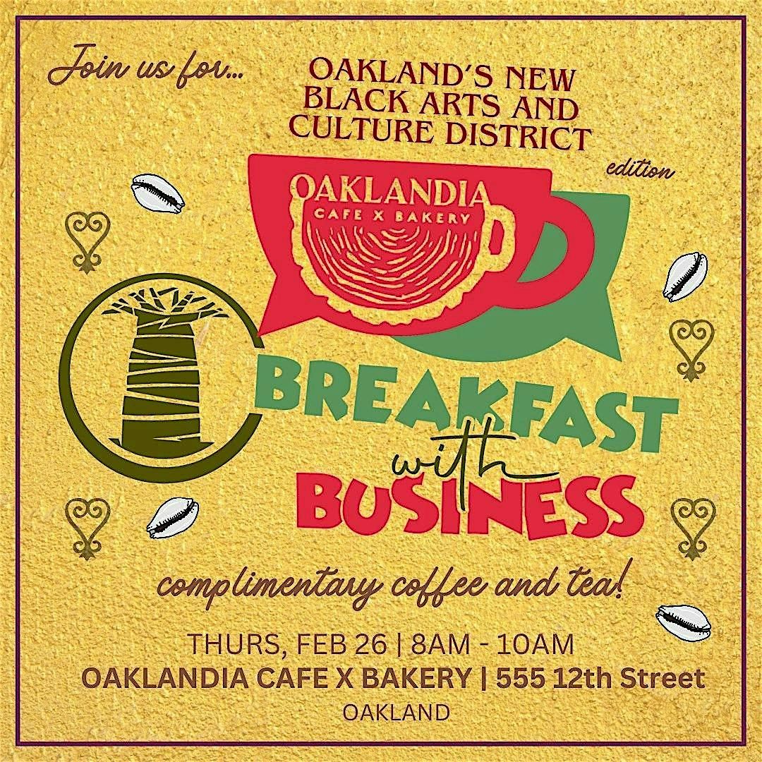 We're back at it with another opportunity to tap in on upcoming events, initiatives and policy affecting small business in Oakland!! Our Breakfast With Business morning mixers are informal, unscripted opportunities for sharing and discovery. Big gratitude to downtown's tastiest, Black owned bakery and cafe @Oaklandia for partnering with us and always offering safe, comfortable space, hot and fresh menu and coffee on ready pour! This time we're talking about the Black Arts Movement and Business District recent designation by the State of California as an Arts and Culture district. What does that mean for Oakland? What defines the district? What does that mean for small business within the district, Black owned or otherwise??
