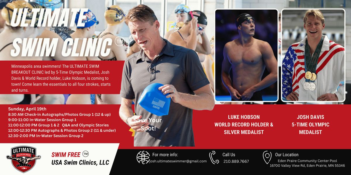Join us for an extraordinary experience at America's favorite swim clinic, the legendary 3-Time Gold Medalist, Josh Davis and World Record holder, Luke Hobson, team up to inspire MN swimmers. This event will take place in Eden Prairie on Sunday, April 19th. Don't miss this unique opportunity for your swimmers to learn the Core 7 tips for peak performance and also how to balance the disappointments that come along the way.