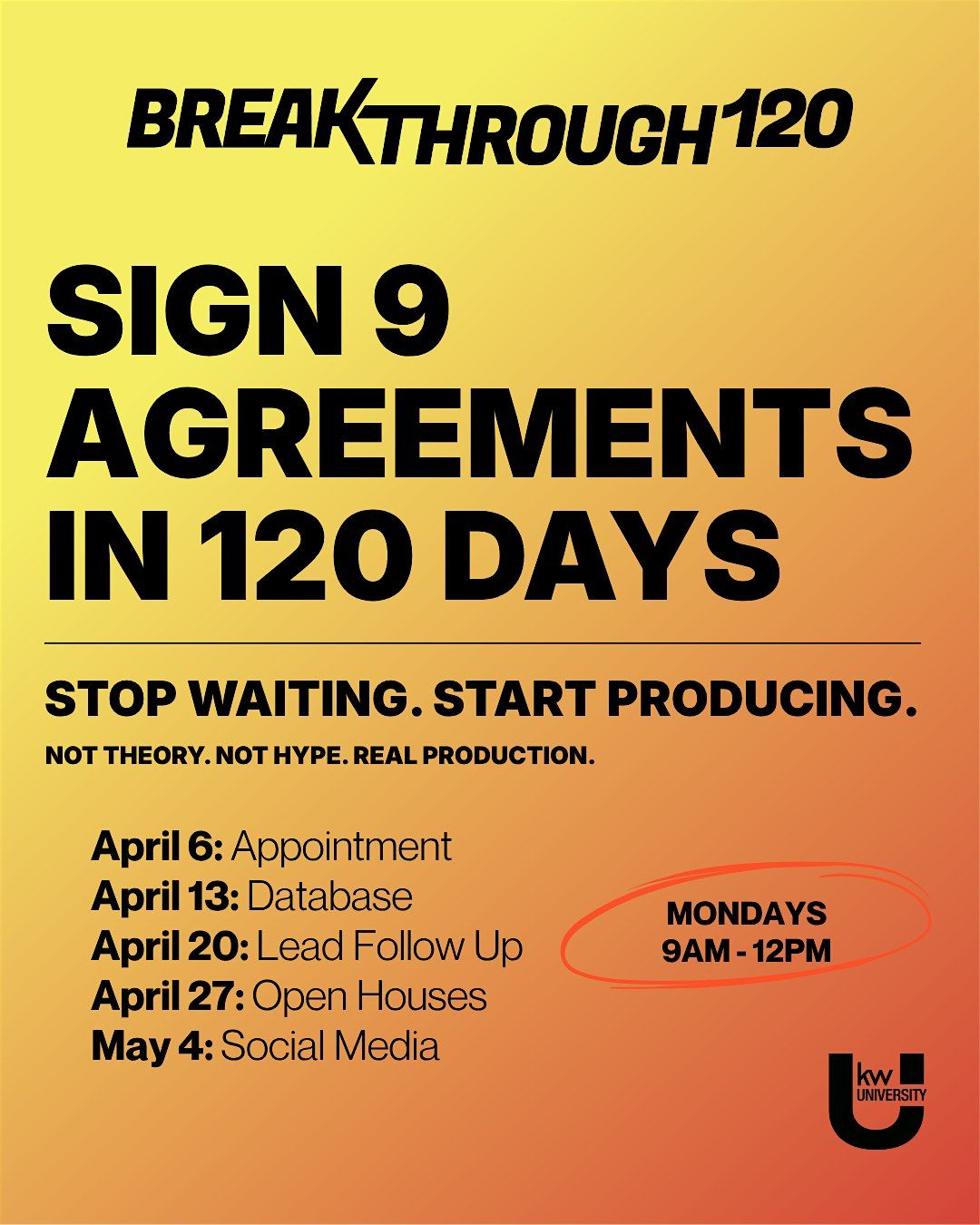 Sign 9 agreements in 120 days. Not theory. Not hype. Real production.About this Event