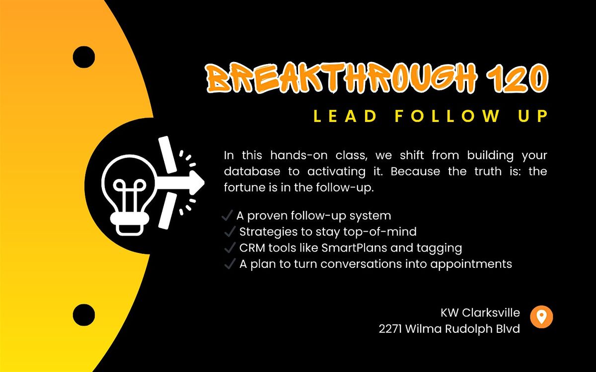 In this Breakthrough 120 session, we shift from building your database to activating it. Because the truth is: the fortune is in the follow-up.