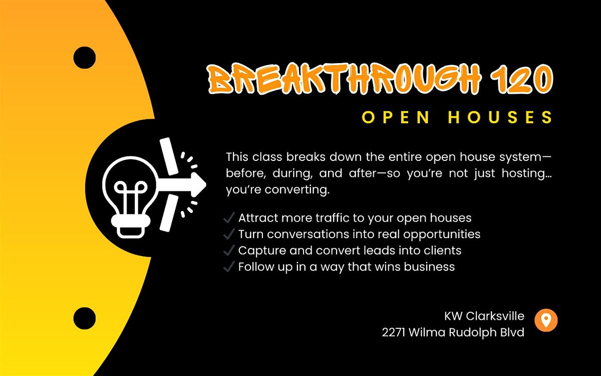 In this session of Breakthrough 120, you’ll learn how to leverage open houses as a consistent, low-cost lead generation strategy that connects you with both buyers and future sellers .