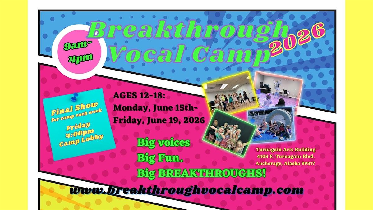 Give your child the opportunity to build confidence, develop their voice, and experience the joy of performing at Breakthrough Vocal Camp, now in its sixth year at the Turnagain Arts Building.