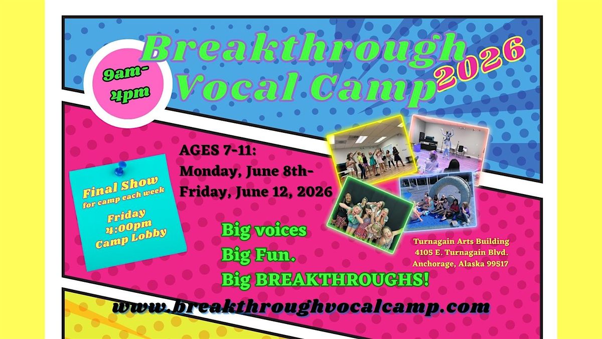 Give your child the opportunity to build confidence, develop their voice, and experience the joy of performing at Breakthrough Vocal Camp, now in its sixth year at the Turnagain Arts Building.