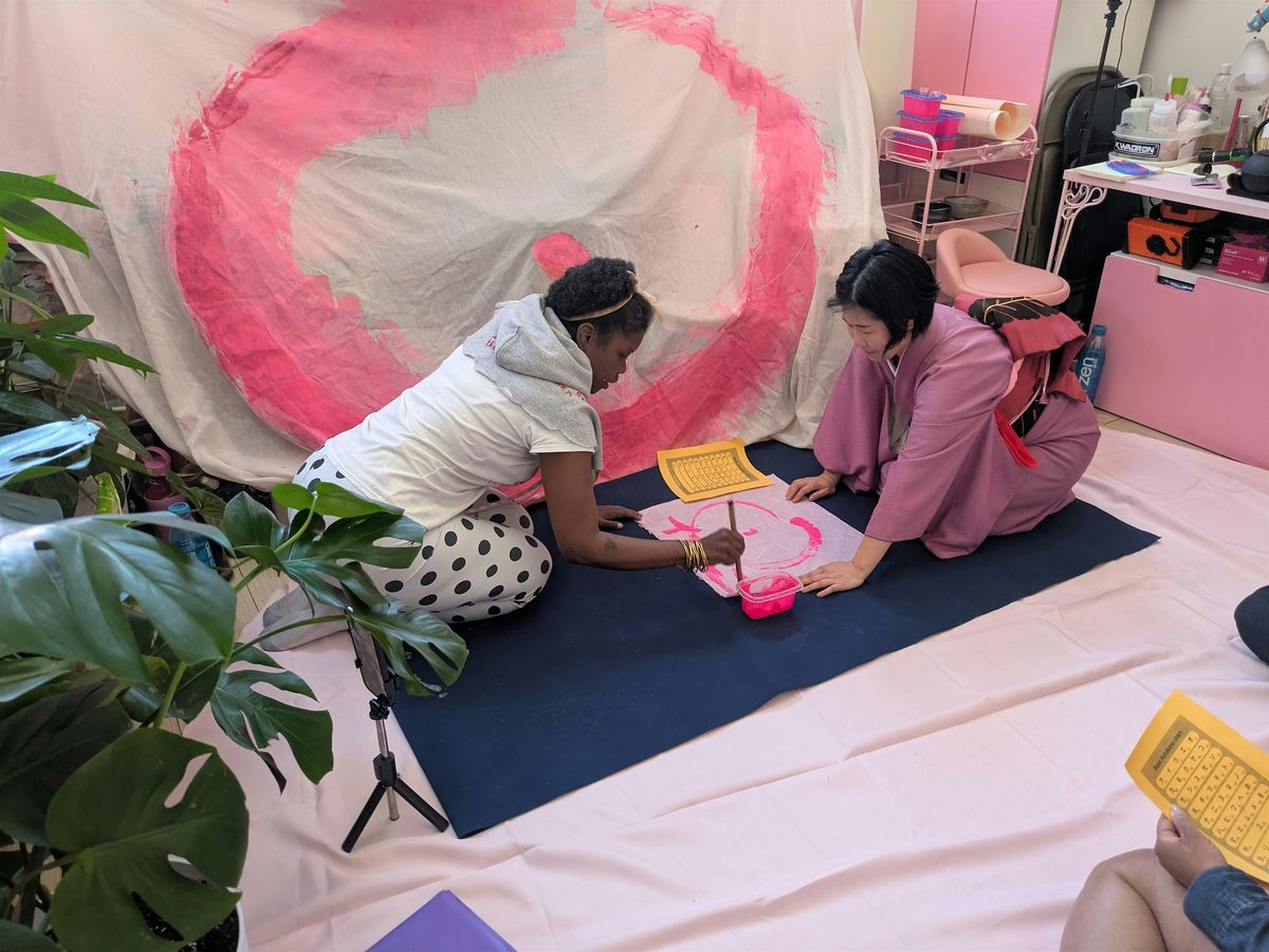 Join Japanese ceremonial tea master and calligraphy artist Mochi (@mochiakadorogame) for an interactive presentation of the traditional Japanese tea ceremony, meditation, calligraphy, circle and breast art motifs.