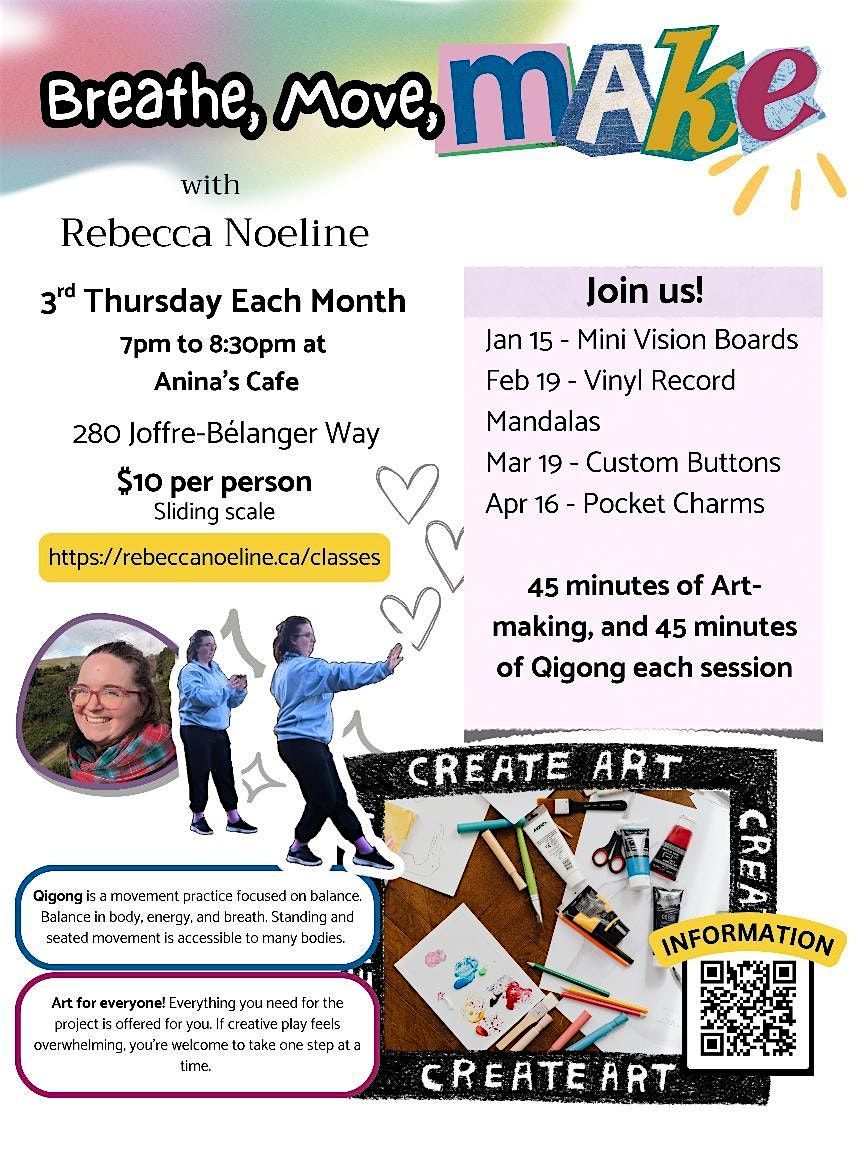 🎨 On the Third Thursday of every month, join Rebecca at Anina's Cafe for movement and making! Open for everyone, and available on a sliding scale/pay what you can model. $10 for an hour and a half of qigong, and creating a mindful take-home make. Vision boards, mandalas, custom buttons, and pocket charms start the first quarter of the year off right!