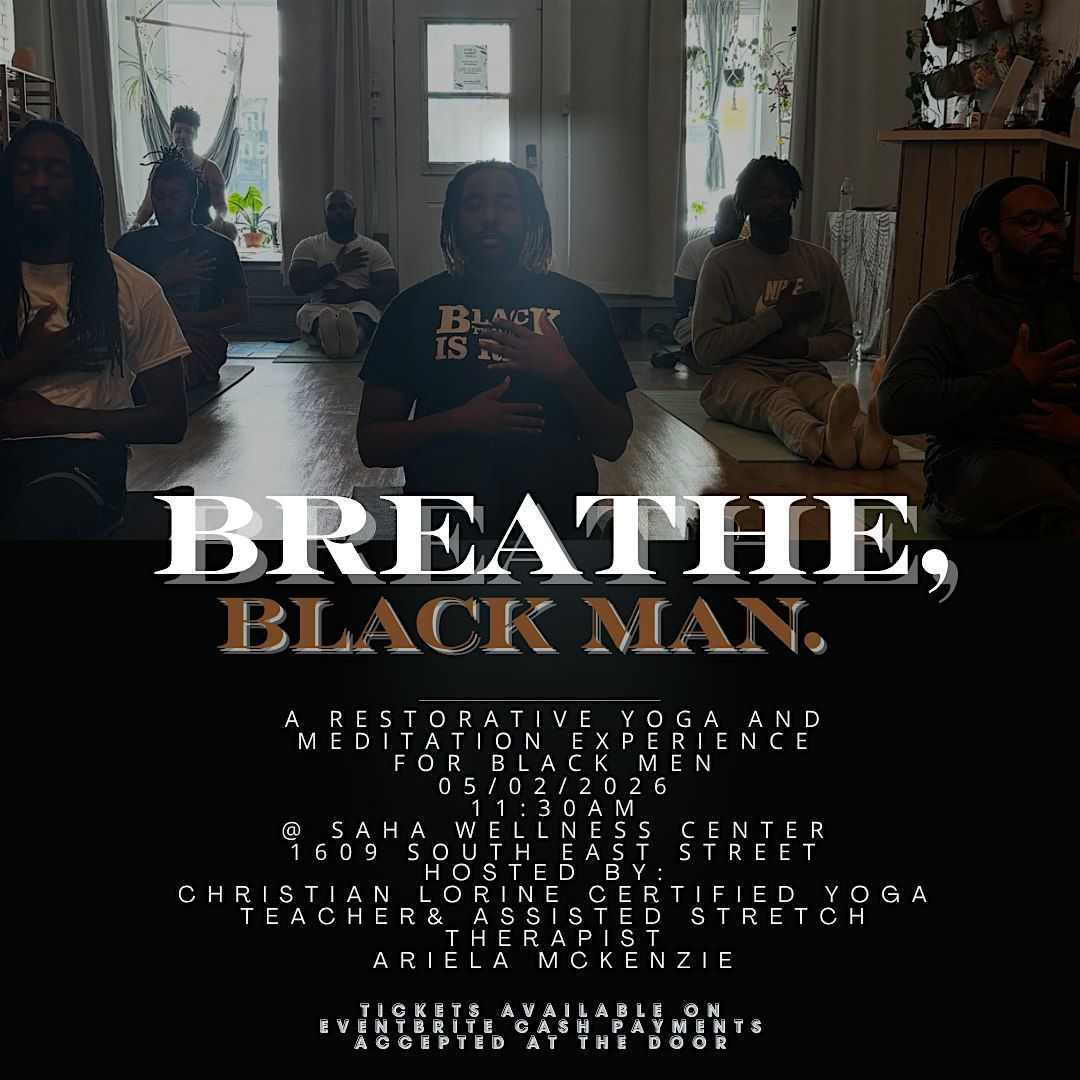 Join us at the Saha Wellness Center on May 2, 2026, at 11:30 AM (ET) for an uplifting, in-person experience. Breathe Black Man is centered on rest, relaxation, and building community in a supportive space designed just for you.