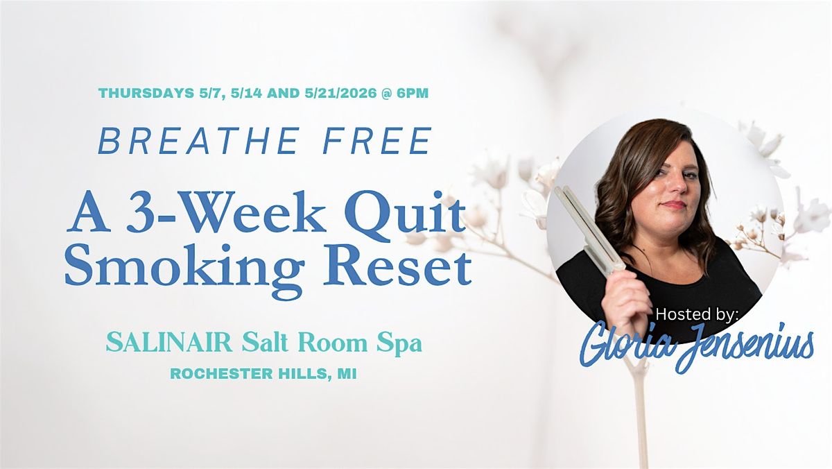 Breathe Free: A 3-Week Quit Smoking Reset In A Salt RoomRochester Hills, MI | Thursday, May 7 • 06:00 PM - 07:00 PM EDT