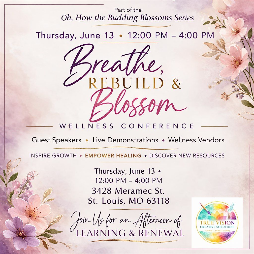 The Breathe, Rebuild & Blossom Wellness Conference brings together speakers, demonstrations, and community resources designed to help you move forward with clarity and confidence. Whether you're focusing on mental wellness, personal growth, or simply looking for new information and resources, this experience is meant to leave you better than you arrived.