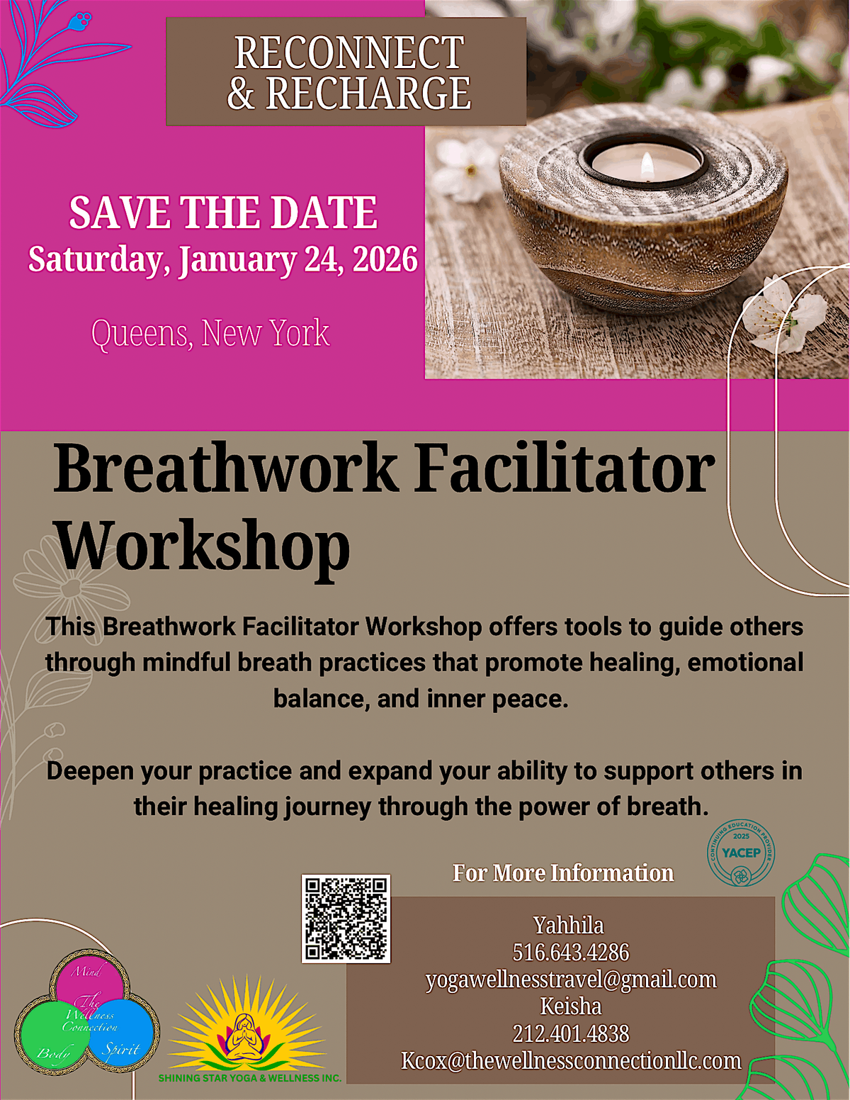 Join us for a transformative Breathwork Facilitator Workshop where you'll learn to harness the power of your breath for healing and growth.