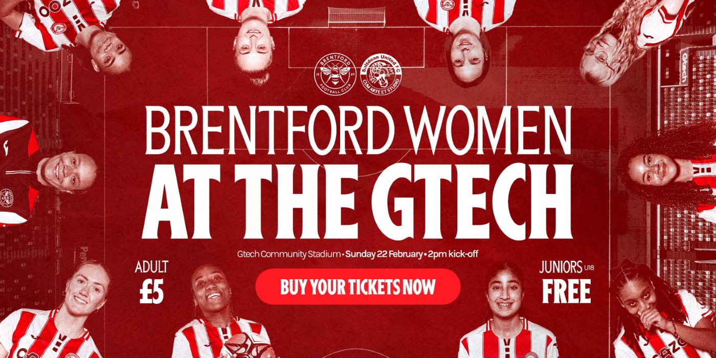 Brentford Women will take on Saltdean United at Gtech Community Stadium on Sunday 22 February (2pm kick-off GMT); tickets for the top-of-the-table clash are free for under-18s and £5 for adults, with £2 from every ticket donated to girls' football programmes.