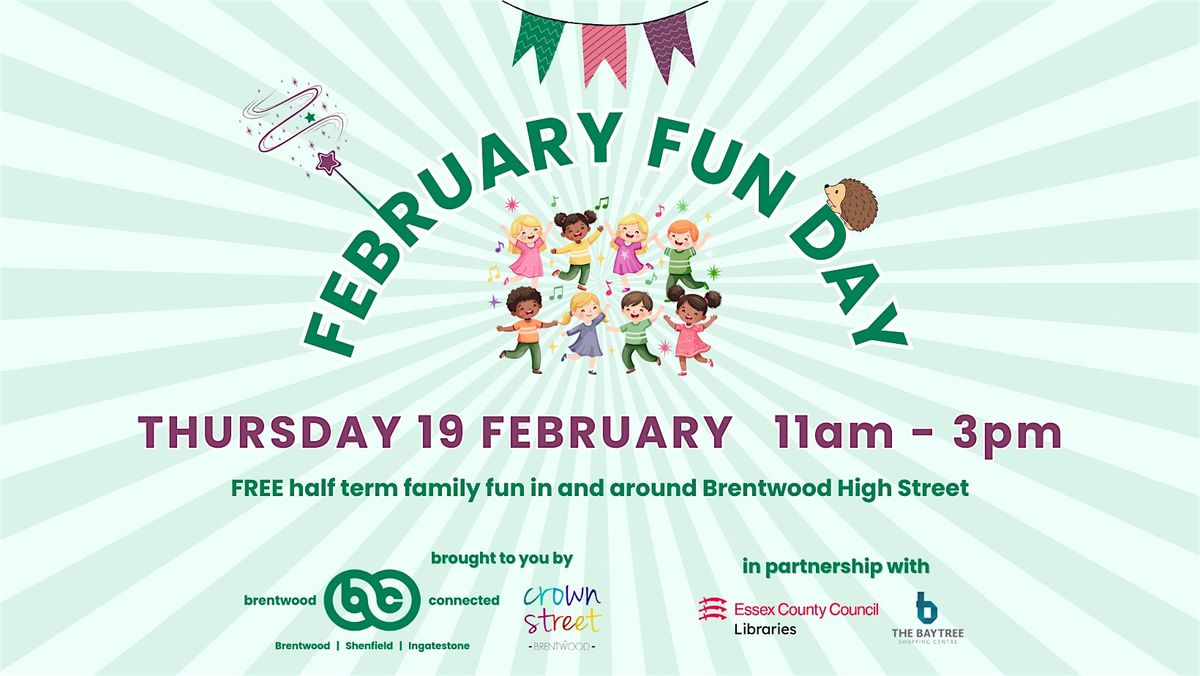 The Brentwood February Fun Day is brought to you by Brentwood Connected and Crown Street businesses, in partnership with Essex Libraries and The Baytree Shopping Centre.