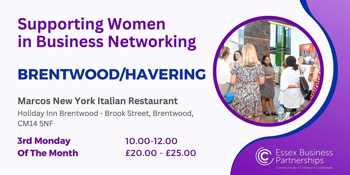 If you would like to meet with like-minded women, please join us for our women’s networking meeting at Marcos New York Italian restaurant within The Holiday Inn, Brentwood, whilst enjoying a selection of teas and coffees with a late breakfast selection.